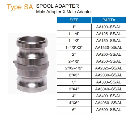 Stainless Steel Camlock Reducer Spool Adapter Male Adapter X Male Adapter